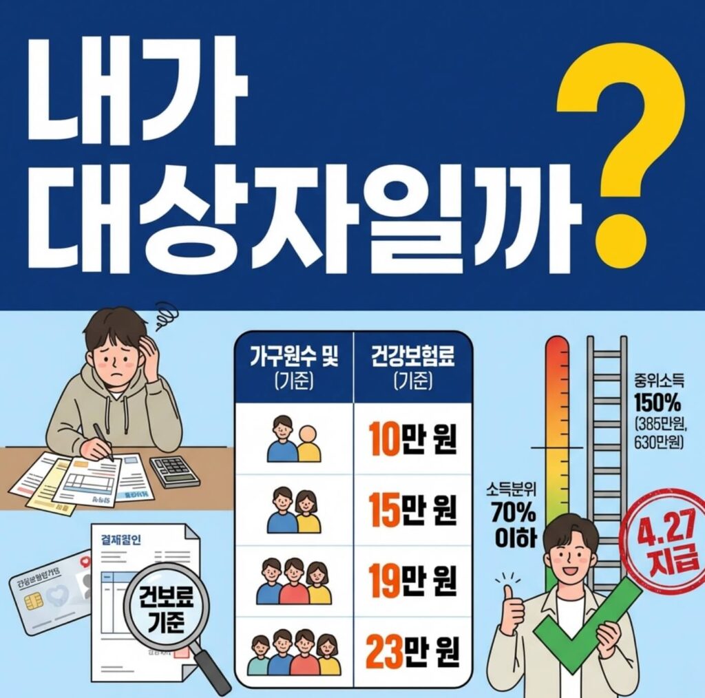 고유가 피해지원금 대상자 확인방법의 핵심은 건강보험료 본인부담금입니다. 월소득은 참고용이며, 실제 선정은 100% 건강보험료 기준으로 이뤄집니다.