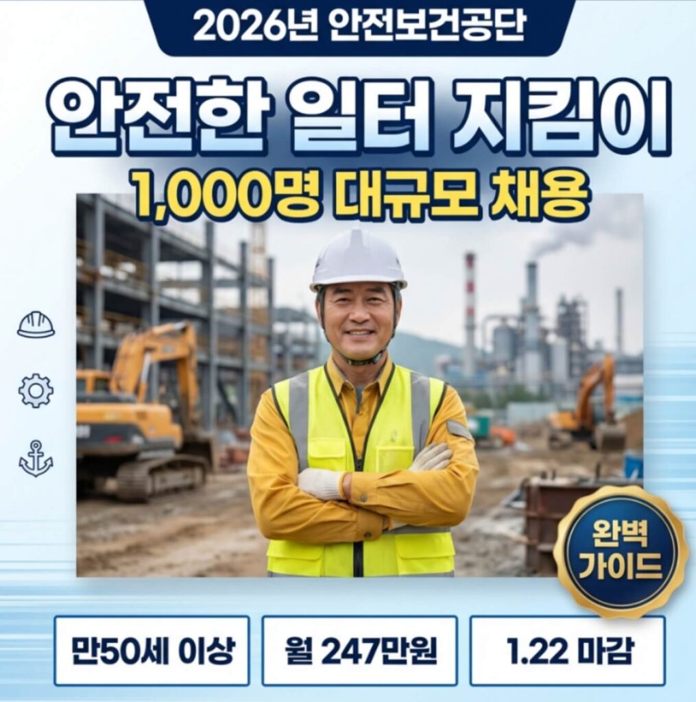 고용노동부와 한국산업안전보건공단이 중소규모 사업장의 산업재해 예방을 위해 ‘2026년도 안전한 일터 지킴이’ 1,000명을 선발합니다. 이 중 채용형 800명에 대한 상세한 모집요강을 종합 분석하여 제공합니다.